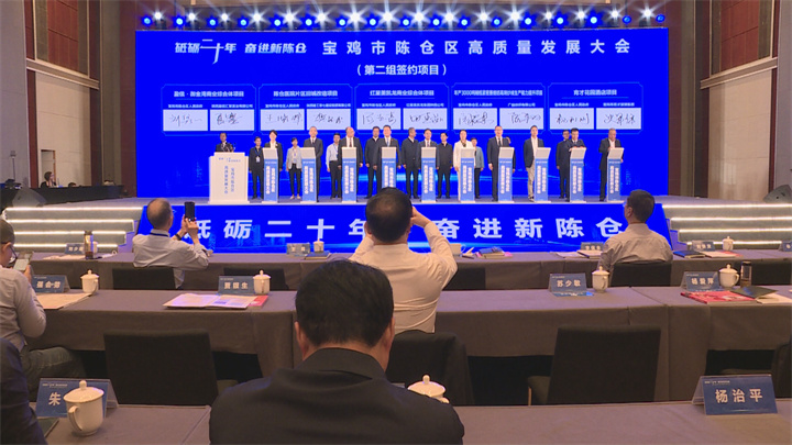 參會代表中國戰(zhàn)略新興產(chǎn)業(yè)研究院執(zhí)行院長姜家福,中國電建西北研究設(shè)計院黨委書記、董事長尉軍耀,青島啤酒寶雞有限公司黨委書記、董事長、總經(jīng)理孔鎖賢在會上發(fā)言。會上,1600兆瓦時壓縮空氣儲能電站、新材料產(chǎn)業(yè)園標準化廠房建設(shè)、紅星美凱龍商業(yè)綜合體等總投資118.8億元的10個項目進行了現(xiàn)場簽約。