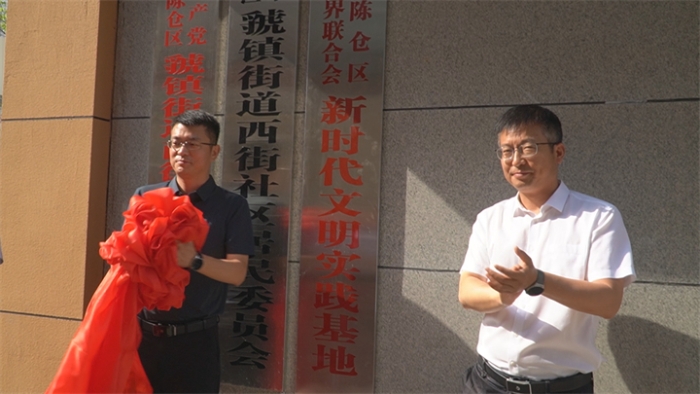 6月27日上午,陳倉區文學藝術界聯合會新時代文明實踐基地在虢鎮街道西街社區揭牌成立。區委常委、宣傳部部長徐宏剛與虢鎮街道負責人一同為基地揭牌。