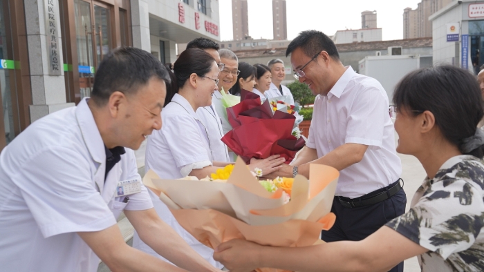 馬霄一行向優秀醫師代表送上了鮮花和慰問品,頒發了榮譽證書,感謝他們為陳倉衛生健康事業作出的積極貢獻,并通過他們向全區醫務工作者致以節日祝福和崇高敬意。