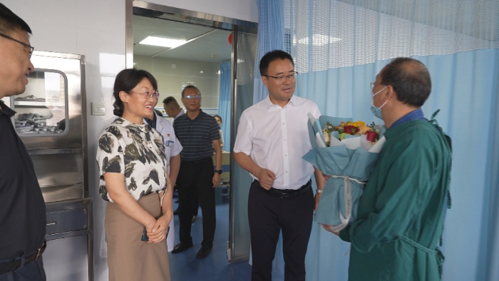 隨后,馬霄、閆海艷還看望陳倉醫院特邀專家,省人民醫院耳鼻咽喉頭頸外科梁昆教授、寶雞市中心醫院消化內鏡中心主任王鴻軻,感謝他們對陳倉衛生健康事業的辛勤付出。馬霄關切詢問陳倉醫院患者接診狀況、了解全區遠程影像診療和心電網絡診療站點分布等情況,他表示,廣大醫務工作者在保障患者生命安全、救死扶傷等方面擔負著重要責任,工作辛苦,今后要繼續努力,一如既往地發揚愛崗敬業精神,不斷提高技術水平,為全區人民群眾提供更全面、更優質、更周到的醫療服務。