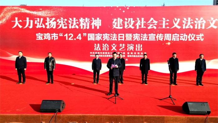 今年12月4日是第十個國家憲法日,12月1日上午,寶雞市“12·4”國家憲法日暨憲法宣傳周啟動儀式在陳倉區(qū)法治文化廣場舉行。