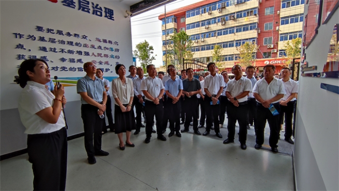 在千渭街道鐵道南社區(qū),觀摩團通過聽匯報、實地參觀等方式,詳細了解了“四型”社區(qū)建設(shè),重點對網(wǎng)格化管理、信息化支撐、精細化服務(wù)、聯(lián)動化共建的“四化共治”機制工作開展情況進行交流學(xué)習(xí)。