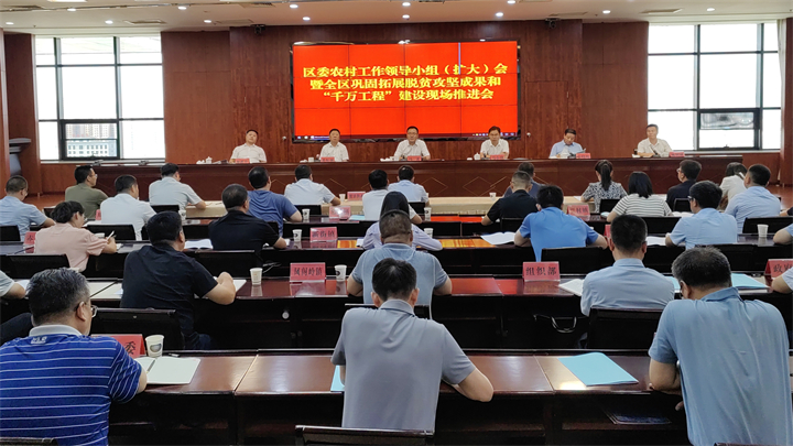 8月23日,區(qū)委農(nóng)村工作領(lǐng)導(dǎo)小組(擴(kuò)大)會(huì)暨全區(qū)鞏固拓展脫貧攻堅(jiān)成果和“千萬(wàn)工程”建設(shè)現(xiàn)場(chǎng)推進(jìn)會(huì)召開(kāi)。區(qū)委書(shū)記馬霄出席會(huì)議并講話,區(qū)委副書(shū)記、區(qū)長(zhǎng)馬小鋒主持會(huì)議。區(qū)人大常委會(huì)主任裴振強(qiáng)、區(qū)政協(xié)主席茍曉明出席會(huì)議。區(qū)委副書(shū)記柳鵬舉傳達(dá)學(xué)習(xí)了習(xí)近平總書(shū)記關(guān)于“千萬(wàn)工程”和“三農(nóng)”工作重要論述及省市有關(guān)會(huì)議精神,區(qū)政府副區(qū)長(zhǎng)楊利剛部署了下一步“千萬(wàn)工程”建設(shè)和鞏固銜接重點(diǎn)工作。