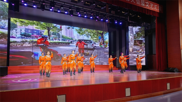在隨后舉行的文藝匯演中,舞蹈、歌曲、大合唱、快板、戲曲等由我區環衛工人自編自演的文藝節目,內容豐富多彩,主題鮮明突出,贏得了現場觀眾的熱烈掌聲。全體職工神采奕奕,他們熱情洋溢的表演,彰顯了新時代的主旋律和正能量,充分展現了我區環衛工人的風采。